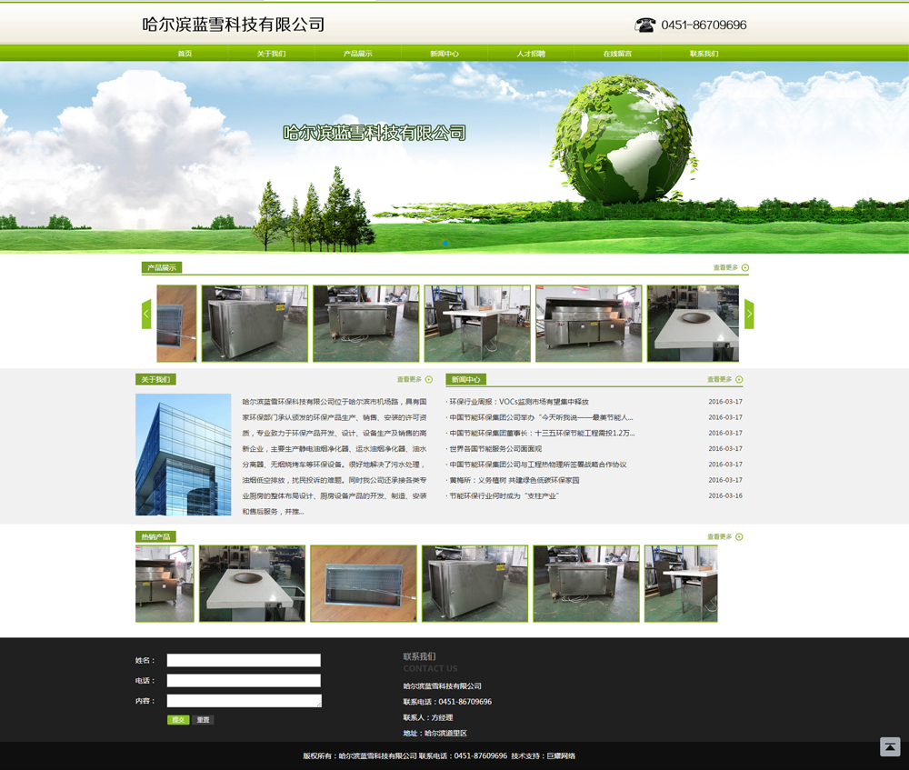 哈爾濱藍雪環??萍加邢薰疚挥诠枮I市機場路,具有國家環保部門承認頒發的環保產品生產、銷售、安裝的許可資質,專業致力于環保產品開發、設計、設備生產及銷售的高新企業,主要生產靜電油煙凈化器、運水油煙凈化器、油水分離器、無煙燒烤車等環保設備。很好地解決了污水處理,油煙低空排放,擾民投訴的難題。同時我公司還承接各類專業廚房的整體布局設計、廚房設備產品的開發、制造、安裝和售后服務,并推薦全國數家企業的名牌飲食機械產品為您配套,讓您的理想變為現實。